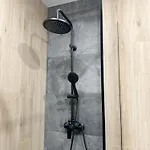 For added convenience, a walk-in shower and a separate toilet are available at the apartment. Additionally, you'll find a hair dryer and towels.